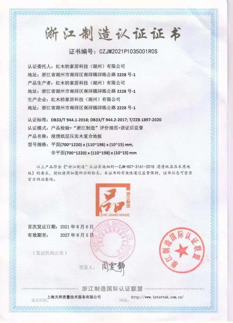 捷報(bào)!紅木枋地板喜獲“浙江制造認(rèn)證證書(shū)”