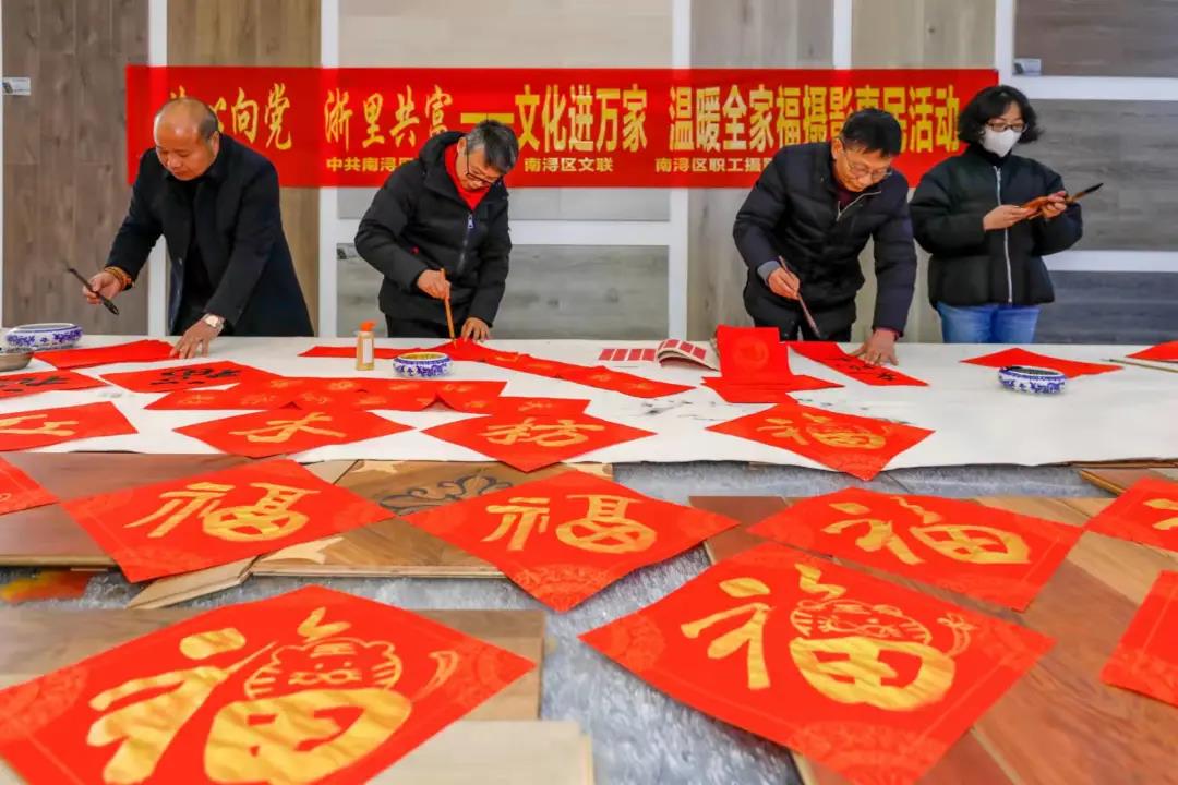 春節(jié)臨近,年味漸濃。為了響應省、市文聯(lián)的號召,近日,南潯區(qū)區(qū)總工會,南潯區(qū)區(qū)委宣傳部,南潯區(qū)區(qū)文聯(lián),南潯區(qū)區(qū)書法協(xié)會,及各位書畫家赴紅木枋地板廠舉辦藝心向黨 浙里共富——文化進萬家,溫暖全家福攝影惠民活動,為紅木枋員工造影留像,書寫春聯(lián)、福字,并送上了新年的祝福。