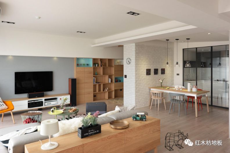 陽光與地板的邂逅,令簡潔明快的現(xiàn)代空間,流淌了一絲溫暖和潤的氣息。