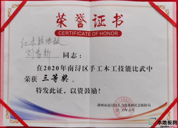 最終,在裁判員嚴格的評分標準下,紅木枋地板的劉春新憑借其扎實的專業(yè)技能獲得了本次大賽的三等獎。